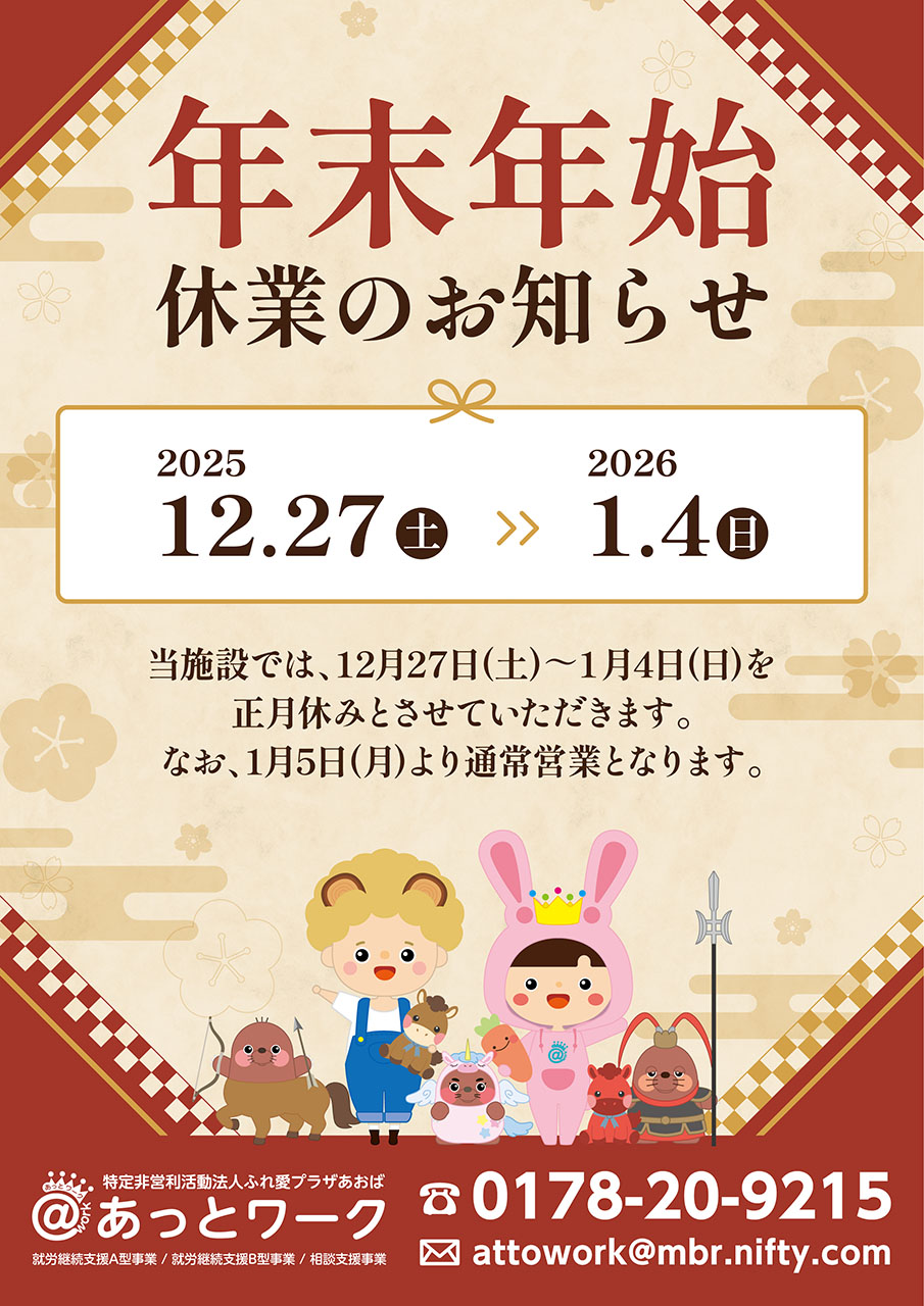 あっとワークは青森県八戸市にある就労継続支援A型事業所・就労継続支援B型事業所・相談支援事業所です。